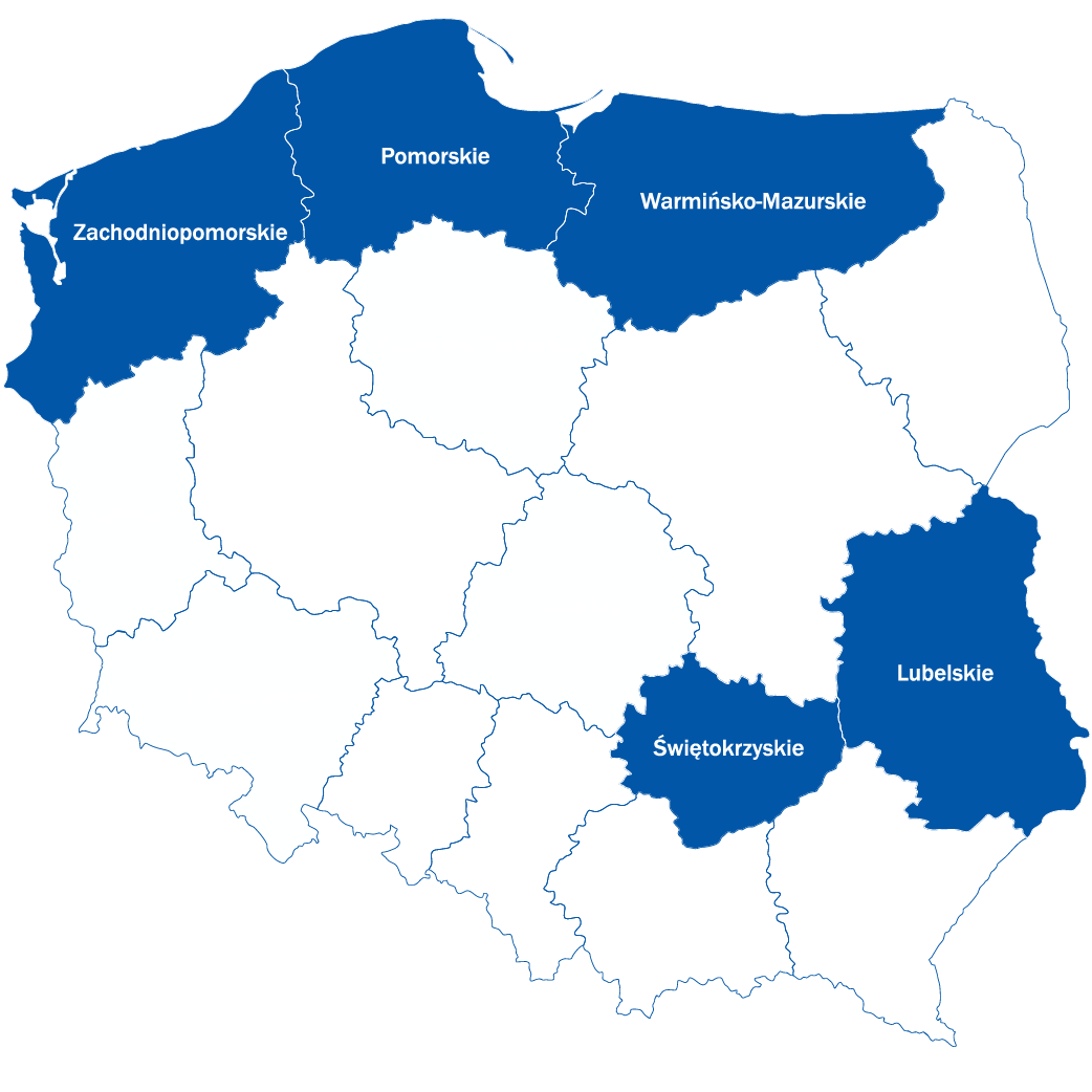 województwa: pomorskie, lubelskie, zachodniopomorskie, warmińsko-mazurskie, świętokrzyskie