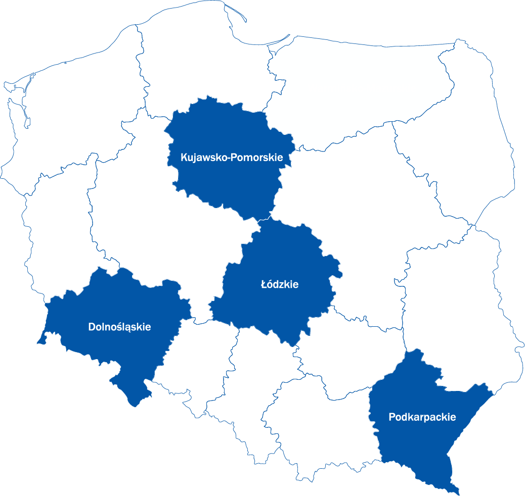 województwa: kujawsko-pomorskie, łódzkie, podkarpackie, dolnośląskie
