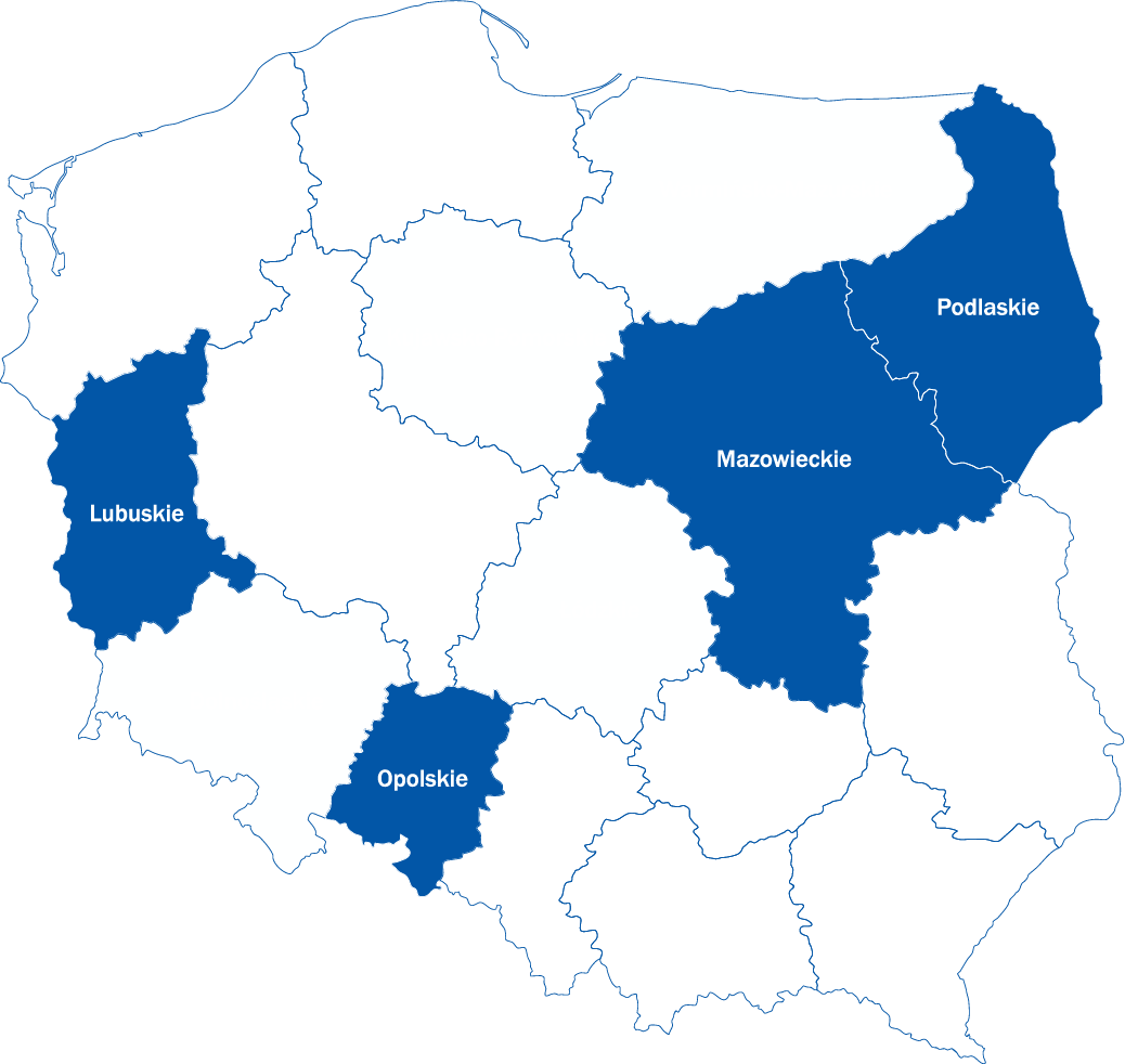 województwa: lubuskie, opolskie, mazowieckie, podlaskie